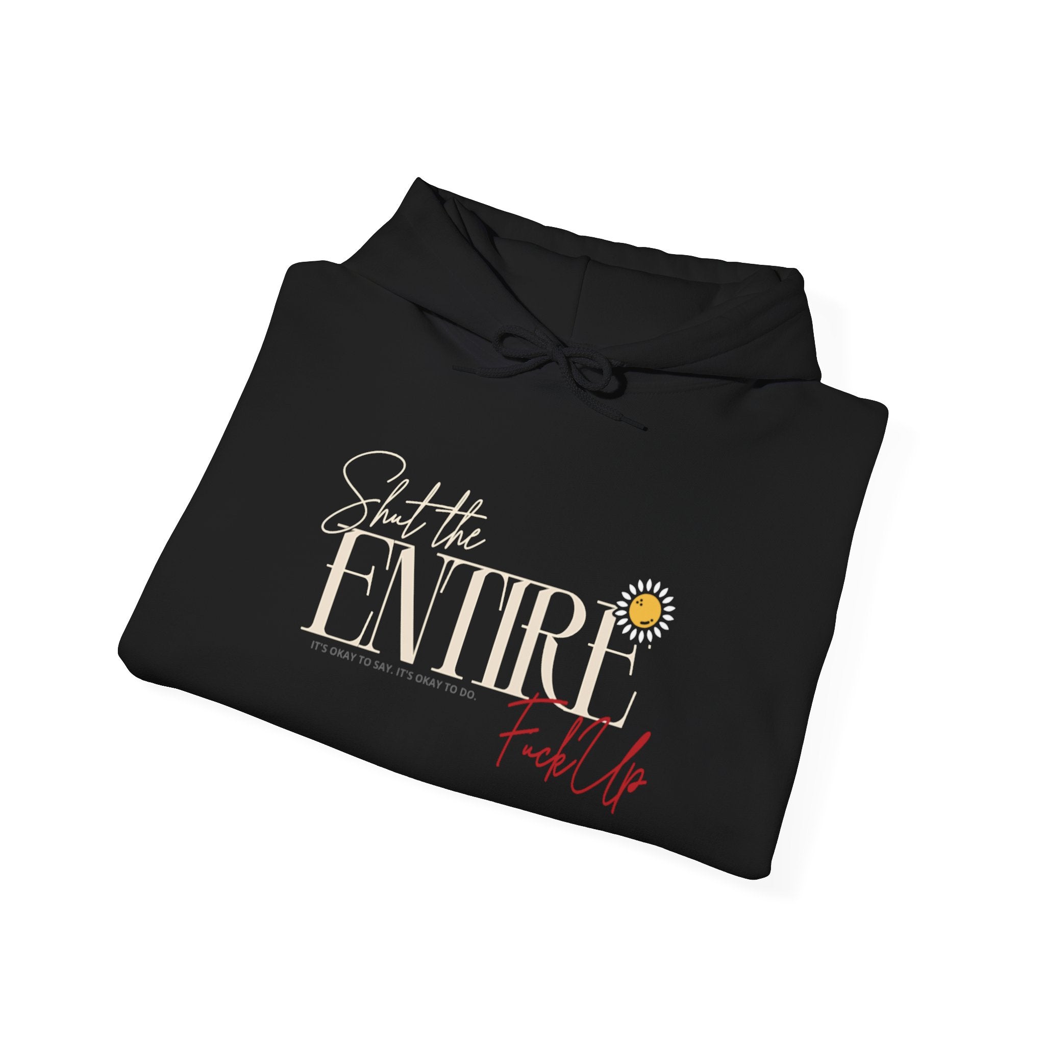 Shut the ENTIRE F*** Up Hoodie is the cozy, classic unisex Gildan Heavy Blend™ (18500) that feels soft, wears well, and says what you’re thinking—so you don’t have to.